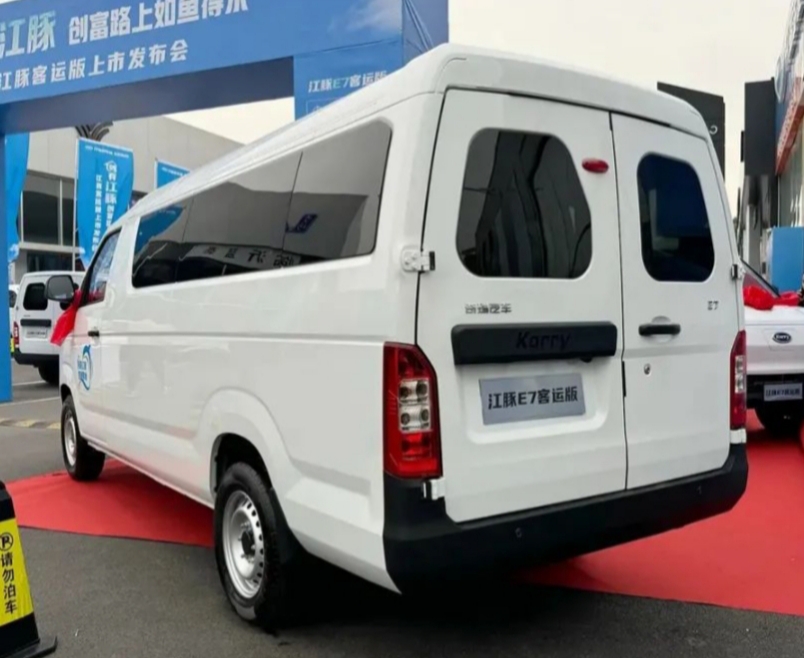 Configuration:开瑞江豚E7明窗版客车,快慢充,开瑞41.86度电,工况续航268公里,6座布局,轴距3250mm,单侧滑门,180度对开式尾门,标配倒车影像,怀挡设计,主副驾双气囊,蠕动模式,6.6kw慢充,支持外放电(220V取电)