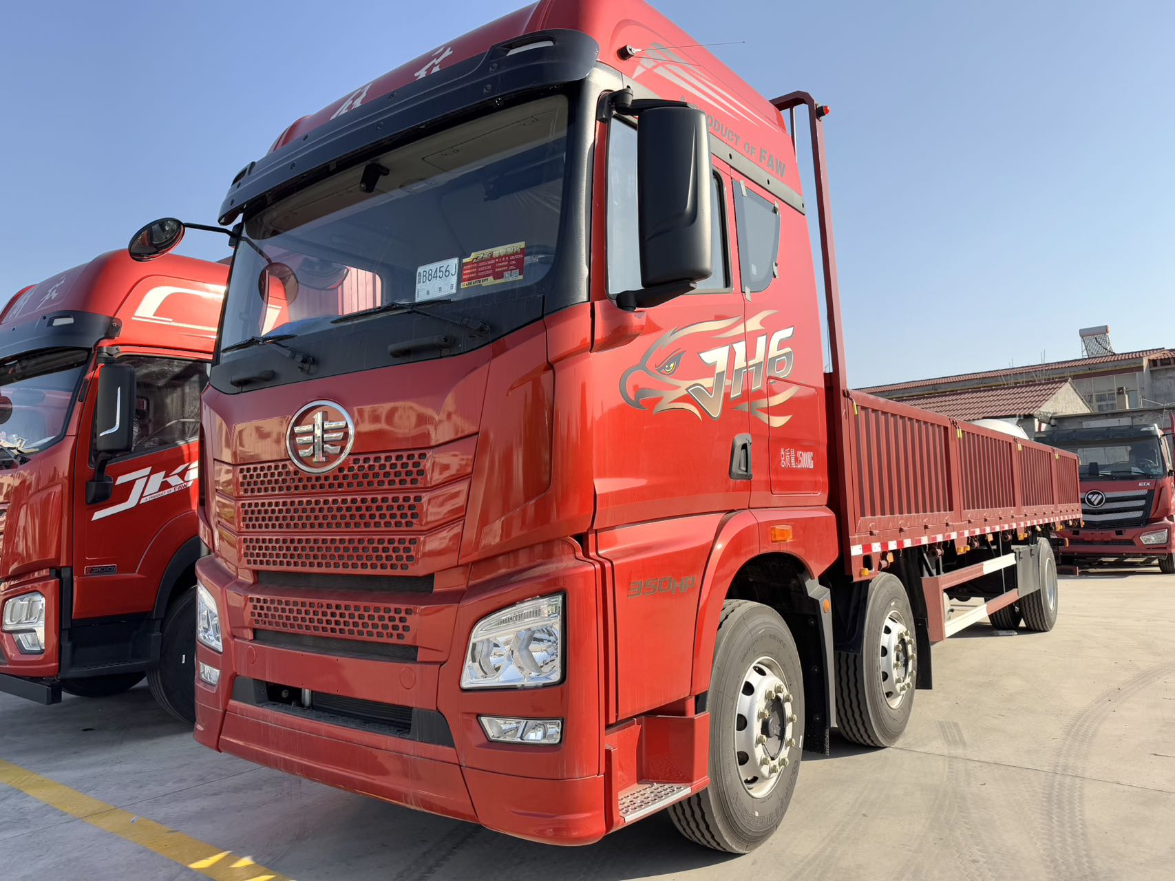 Configuration:新J6L高顶排半驾驶室,液晶仪表、电动玻璃升降、手动后视镜带电加热、带挂车制动、带24V电源接口、驾驶员座椅为真皮通风座椅(腰托、扶手),4x2,国六,大柴CA6DK2-36E65(SCR only气驱),430离合器,一汽CA10TAX145S变速器(半铝壳体),435冲焊桥(自动调整臂、国产ABS、1878轮距,速比4.1),12R22.5型18层级无内胎,车架:270x75x(7+5),轴距3600mm,50#牵引座,新F4N-1900前轴,空调,ABS,解放红金属漆,其他:自动空调、铝油箱400L、悬架7/7+6、驾驶室四点螺蓄悬置、四平转向机、带蹬车梯、135Ah蓄电池、机箱体现6/6万公里长换油周期、简易整体防飞溅挡泥板、T-box2.0、天线变速操纵杆、长保养油滤、制动器衬片重换报警、FCW前碰预警、LDW车道偏离报警、国产ESC电子稳定性控制、限速89km/h、行驶记录仪升级