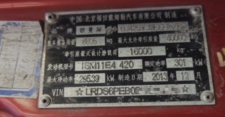 Configuration:厂家试验车,13年12月,欧曼GTL牵引车,6x4,高顶驾驶室,国四,康明斯420马力,可做出口,不含运费