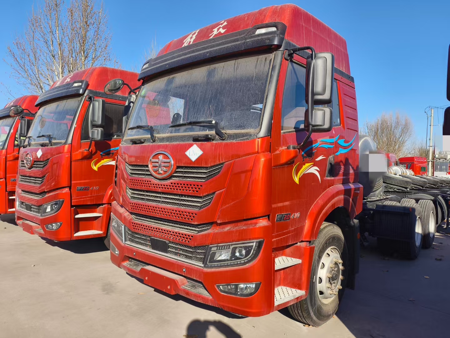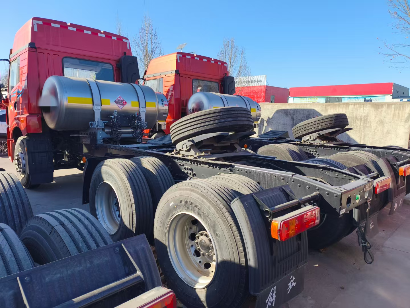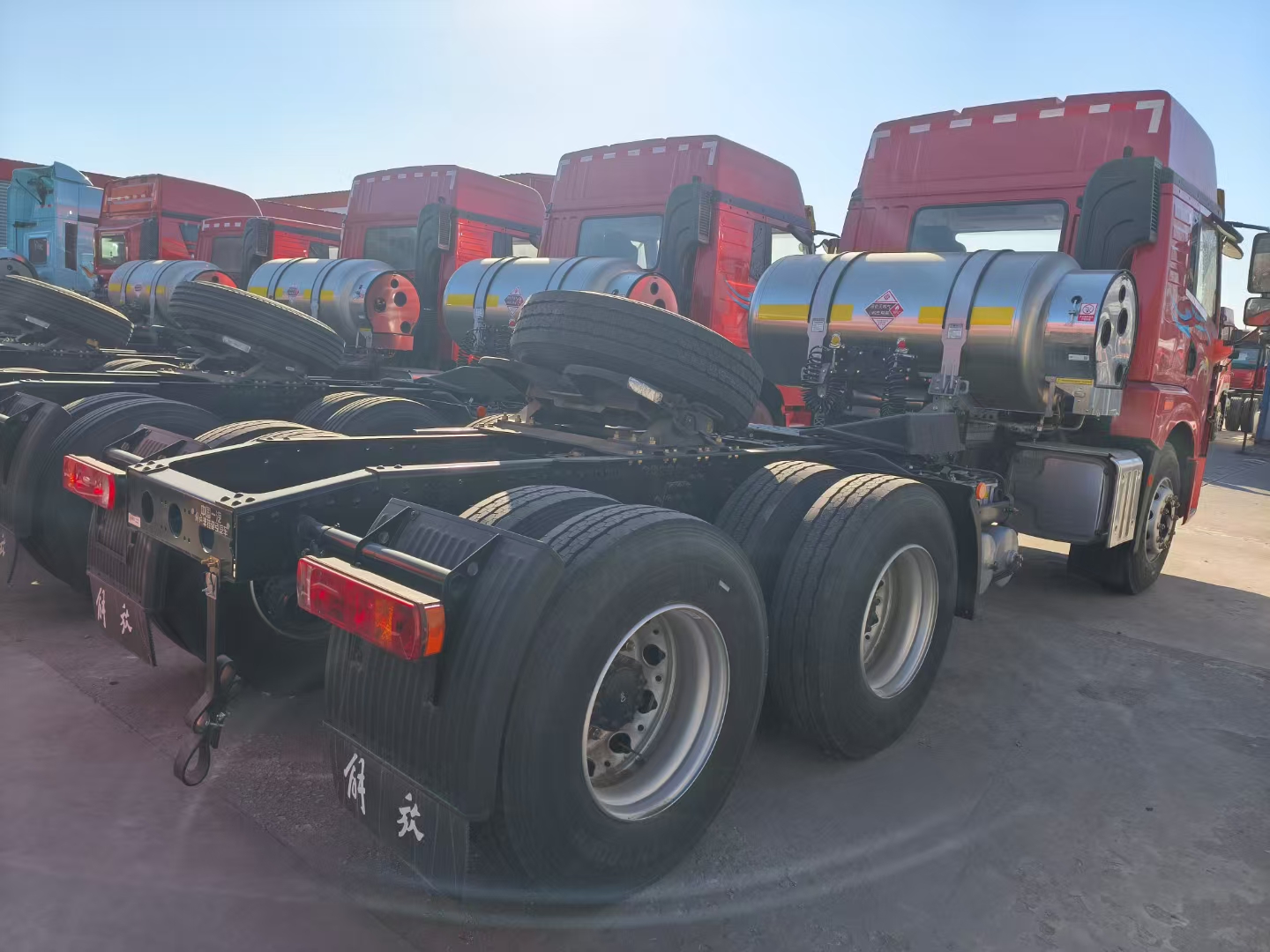 Configuration:解放悍V2.0牵引车,LNG,6x4,高顶驾驶室,国六,潍柴 410马力,法士特12挡变速箱,液缓,1000L 气瓶,前2后3板簧,速比 3.7