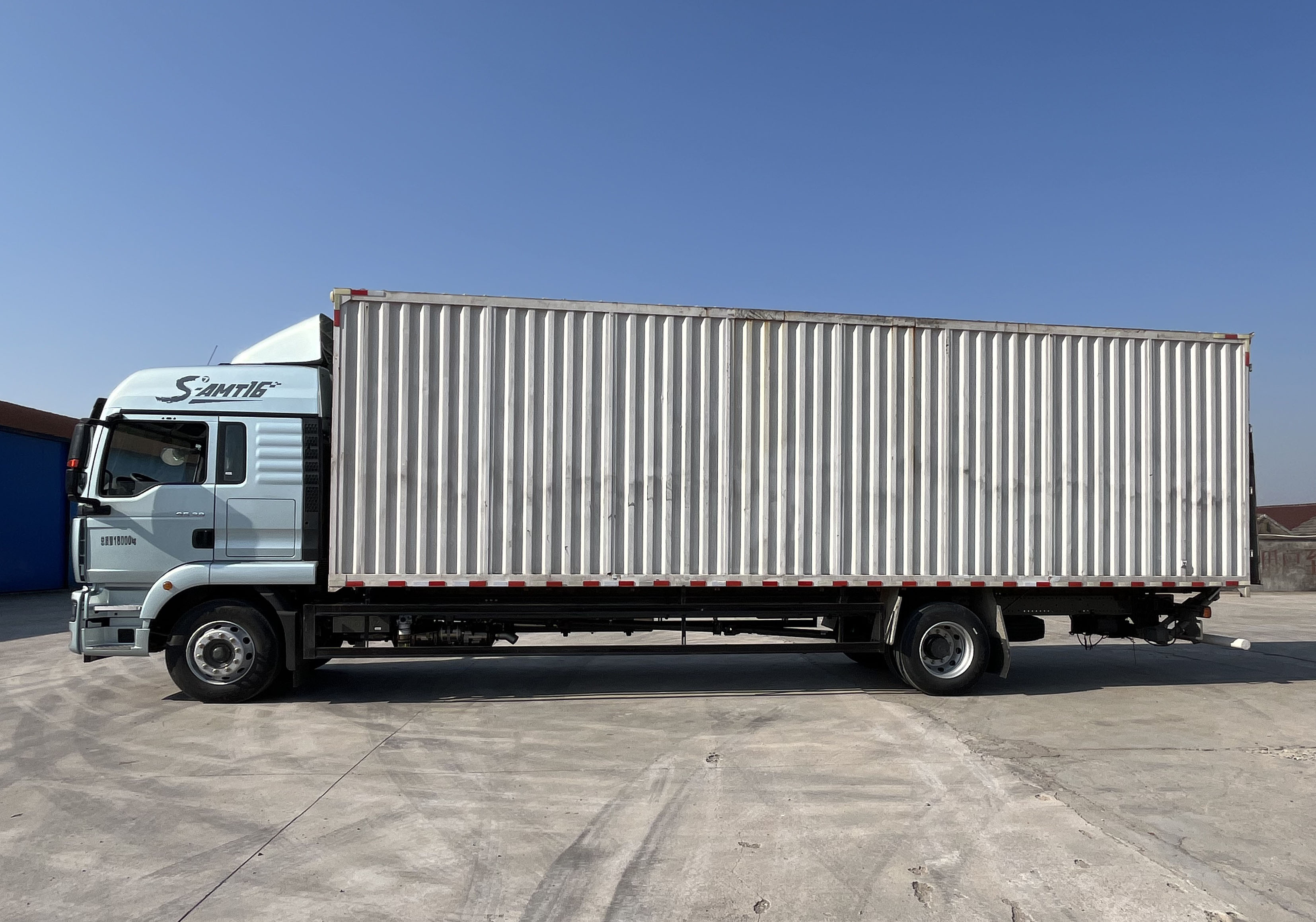 Configuration:汕德卡G5厢式货车,4x2,汕德卡;G5创领;基础款;载货车;快递快运;G5-T驾驶室 创领版;MC07.29-61发动机;HW11710ACL变速箱;1094Q自调臂前轴(鼓);MCJ09BGQ自调臂单后桥(鼓);速比3.7;双层车架(6+L/250);前后标准版多片簧(7/7+3);国产方向机;公路版进气系统;限速89km/h;圆柱形消声器排气系统;长效燃油粗滤器;ABS(4S/4M);高位保险杠(全金属);轻量化车轮;275/80R22.5轮胎(纵向花纹/18PR);600L油箱;选装非LED前照灯;四方位摄像头;终端排放监控装置;120AH蓄电池;灭火器;燃油粗滤器(手动泵);9米6厢式上装