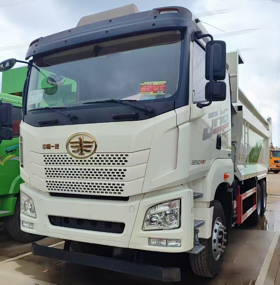 Configuration:解放JH6自卸车,8x4,平顶驾驶室,国六,潍柴350马力,法士特12挡变速箱,带同步器,300轮减后桥,U型上装,货厢长5.6米,高度150公分,不含运费