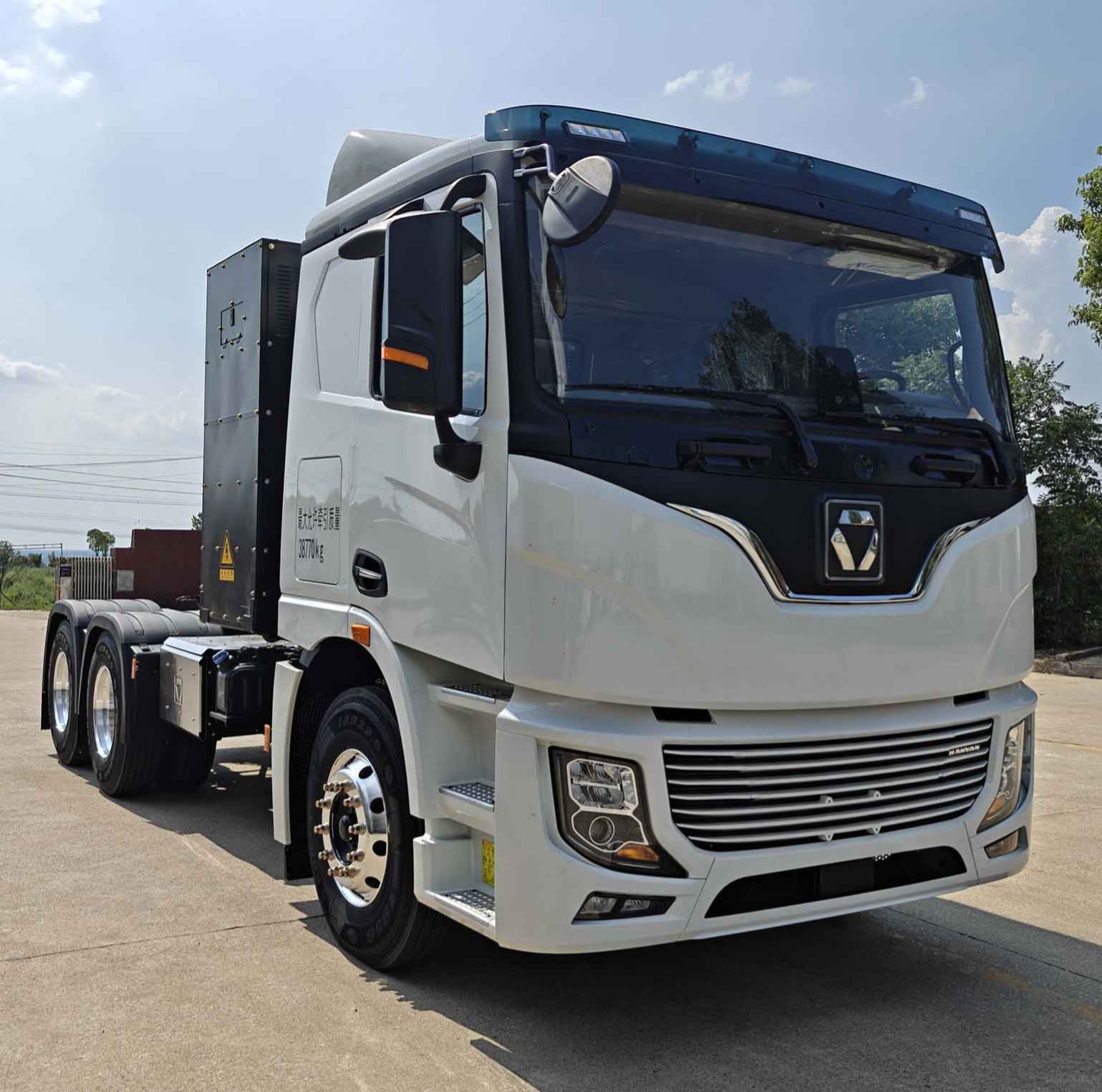 Configuration:库存车,SX4259HY334C牵引车二类/珠光钼红(金属漆)/X12NS6B490//M3000S低顶驾驶室不带导流罩(H)////免维护鼓式驱动桥-3.364//////12R22.5国产无内胎////500L双腔铝合金油箱(油箱水加热)//ABS+ESC/天行健智雅版//电控自动恒温空调////S16AO-铝壳///90鞍座///电动摇窗机/中控锁(带遥控器)////////LED大灯//法士特缓速器、V型推力杆、限速、低顶(2865mm)、L模式、评审订单号XQ222359//底盘版型:轻量化版/细分市场:煤炭运输/车贷管理/出具正式合格证SX4259MD4Q1整车合格证(/发动机型号:X12NS6B490/轮胎规格:12R22.5/整备质量:8800/最大允许牵引质量:40000/鞍座载质量:16070/准乘人数:2/最高车速:89)铭牌,VIN//[车证分离]