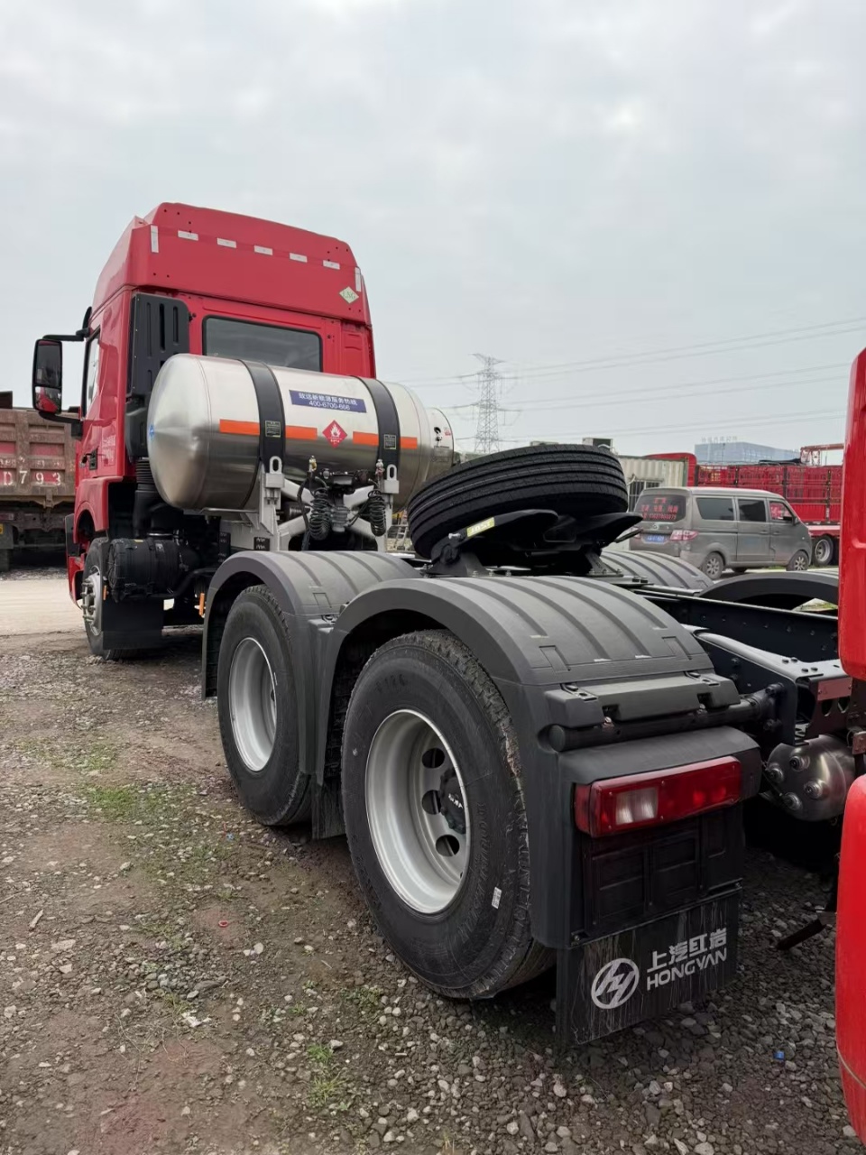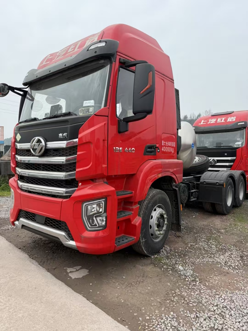 Configuration:红岩杰虎H6牵引车,LNG,6x4,高顶驾驶室,罗马红,国六,上柴SC12ET440Q6发动机,12JSD200TA-B-AL超速档铝壳变速器+FAST缓速器,HY390单级减速冲焊桥(轻量化),速比3.7,HY5.5吨前桥,T20N二骑马板簧3片,12R22.5 PR18低滚阻纵向花纹,后置1000升LNG气瓶,90#鞍座,驾驶室电动翻转,豪华电动后视镜带电加热,驾驶员座椅(阻尼可调),带220V电源,塑料前保险杠,多功能方向盘