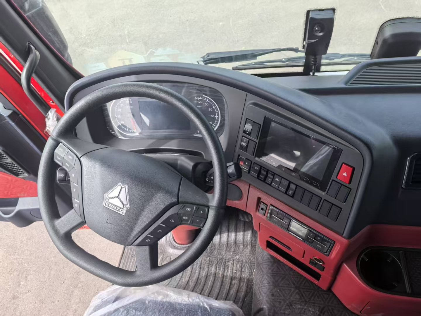 Configuration:豪沃;TX7;基础款;牵引车;煤炭运输;TX-U驾驶室;220V-1000W逆变电源;WP13NG480E61发动机ECI;HW12C-HD25变速箱带法士特液力缓速器;VGD50自调臂前轴鼓;HDZ425QGY自调臂双联桥鼓;速比3.7;手电一体电动举升;TGA技术车架-B版;前后少片簧2/2;国产方向机;公路版进气系统;限速89km/h;标准版排气系统;ABS4S/4M+ESC;低位保险杠非金属;轻量化车轮;12R22.5纵向花纹/18PR;90#金刚鞍座;分体式挡泥板;后置1000L气瓶;LDWS+FCWS带雷达;终端排放监控装置燃气;备后胎;舒适包;轻奢红