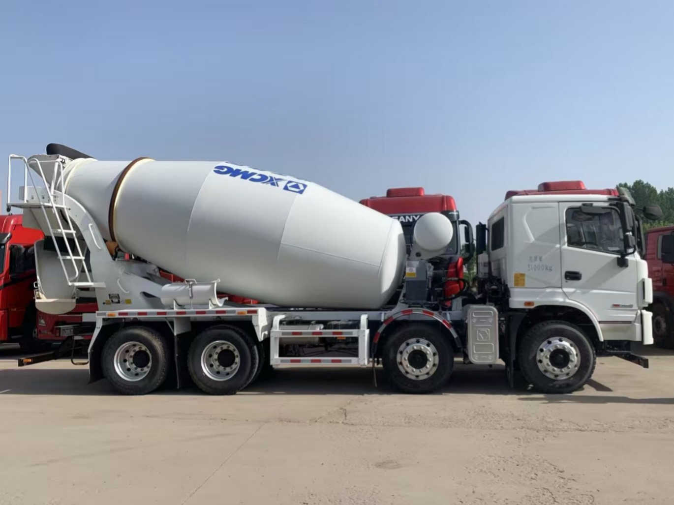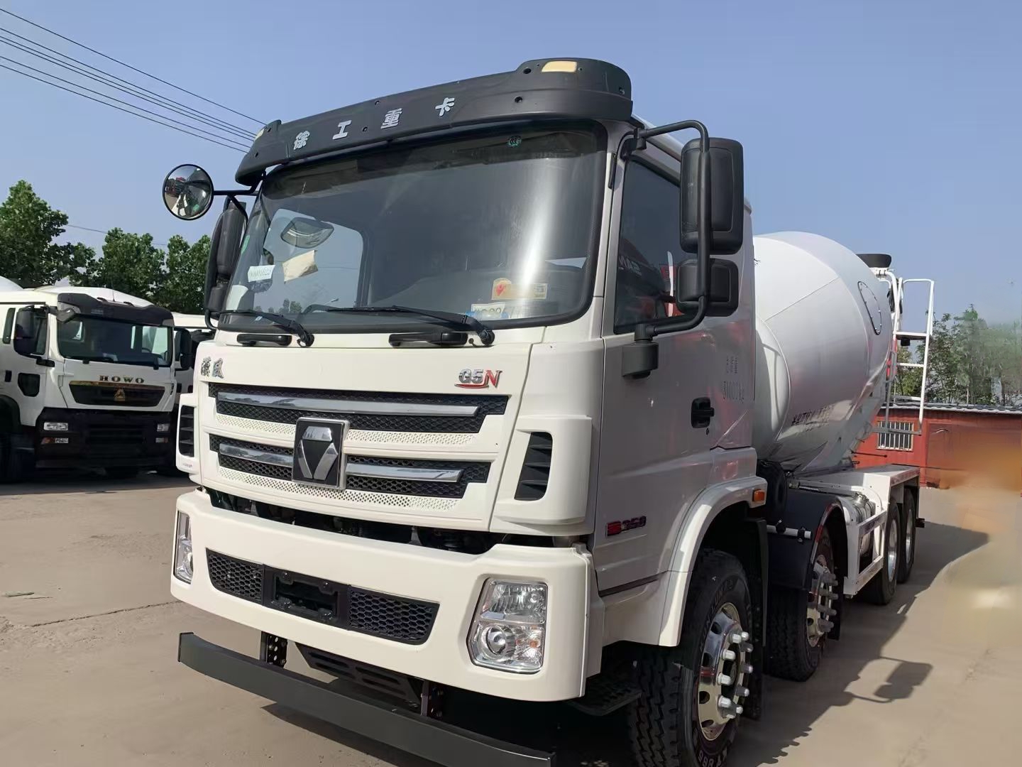 Configuration:XCMG G5NSD concrete mixer truck, 8 * 4, Toyota white, wheelbase 1950+2900+1350, National VI, WP8.350E61, Fast 10JSD140T transmission, 5.5t front axle, 425 dual rear axles, speed ratio 5.286300L aluminum fuel tank, electric flip, electric air conditioning, airbag seats (woven fabric), frame: 280 * 80 * 8+4, leaf spring 3/4, 11R22.5 18PR tires, aluminum alloy wheels for the whole vehicle, T-BOX, Driving recorder, wear alarm, special requirements: latest workbench, electric door and window central locking, single cylinder spiral spring fully floating soft operation multifunction steering wheel default retractable player, water tank protection plate, mechanical rearview mirror, chassis waterproof, front and lower protection, fire extinguisher, upper configuration: standard 12 square, CIMC Ruijiang/Schweiing, hydraulic inlet for the whole vehicle: hydraulic pump/hydraulic motor/reducer