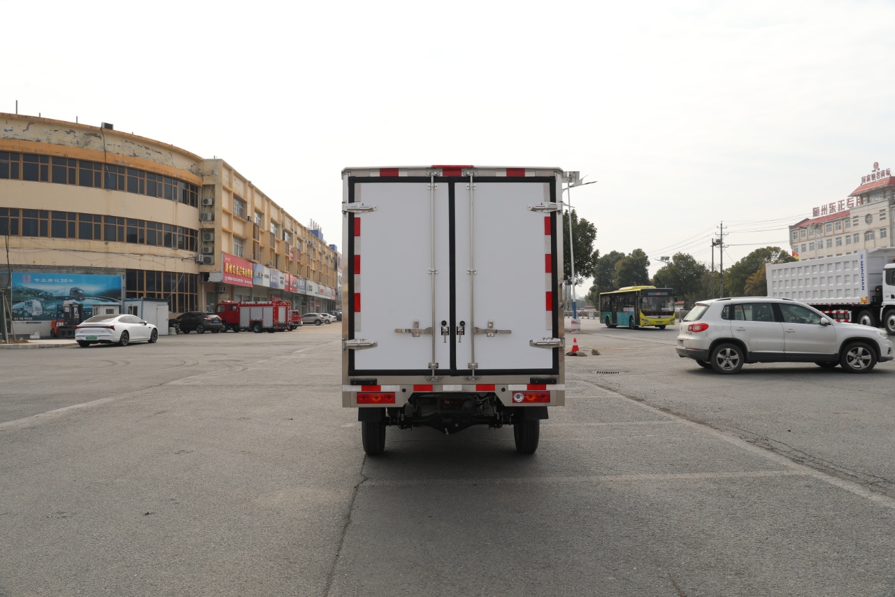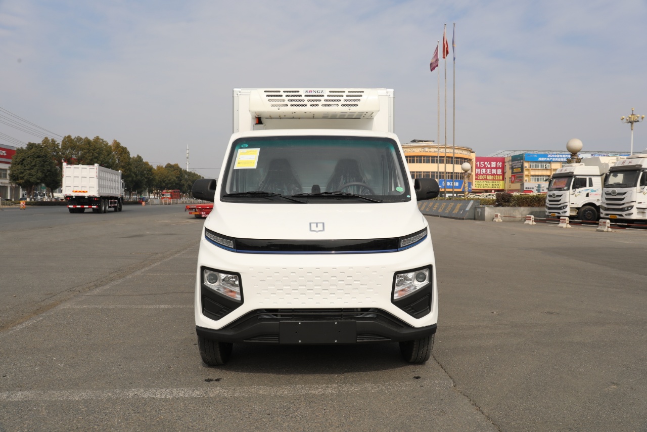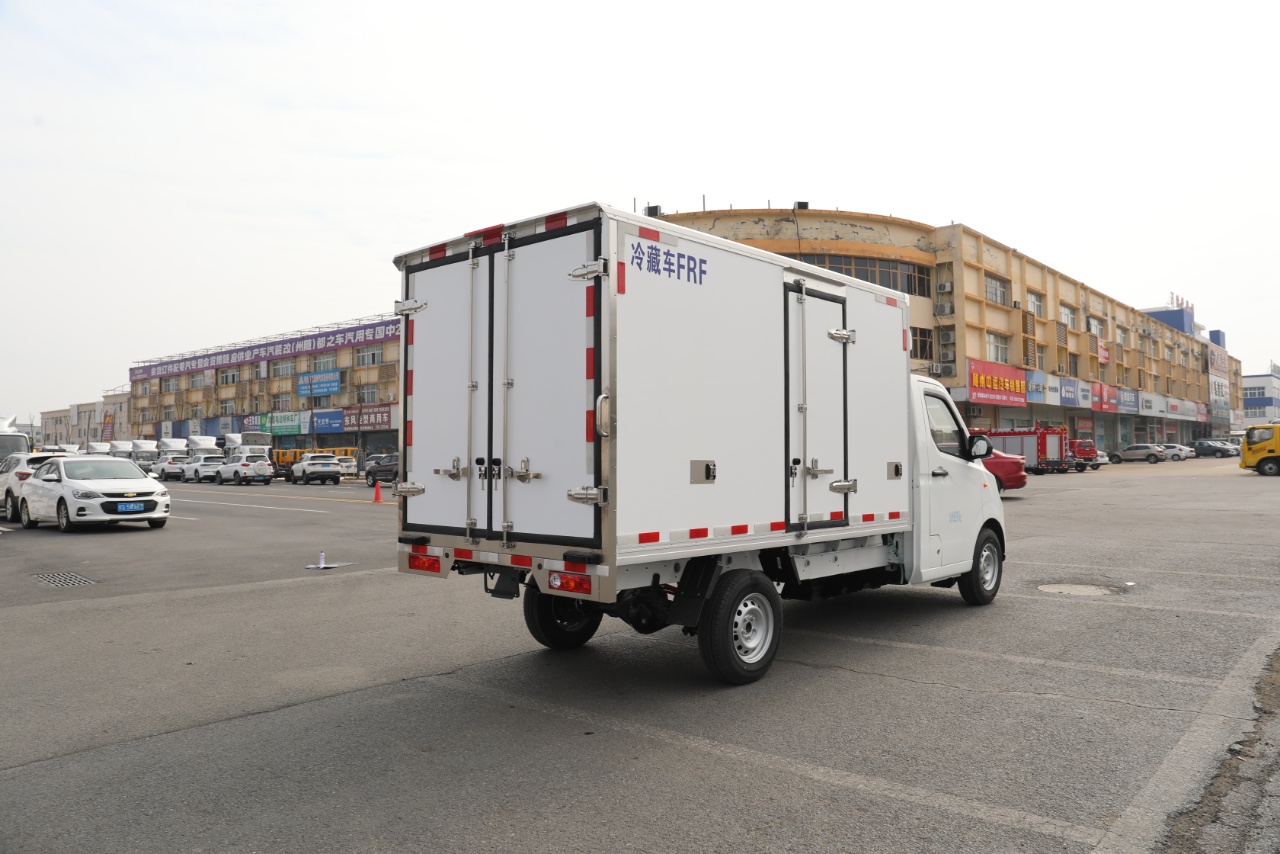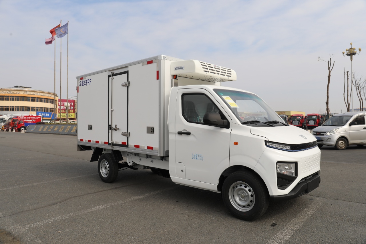 Configuration:吉利 F1E纯电动冷藏车25款(小微卡) 总质量2995Kg, 整备质量1730Kg, 额定载质量:1135Kg, 轴距:3360 动力电池:吉利智芯电池46.08kwh。 续航里程:150-180公里 驱动电机:智芯电机30/70kw 轮胎:185R14LT 8PR 行车制动:液压制动、前盘后鼓. 配置:单排驾驶室、液晶仪表盘、倒车雷达、电动空调、电动门窗、中控门锁、日间行车灯、遥控钥匙USB+蓝牙、ABS、EBD、T-BXO。 冷藏系统:负18度冷机 质保期:8年40万公里。
