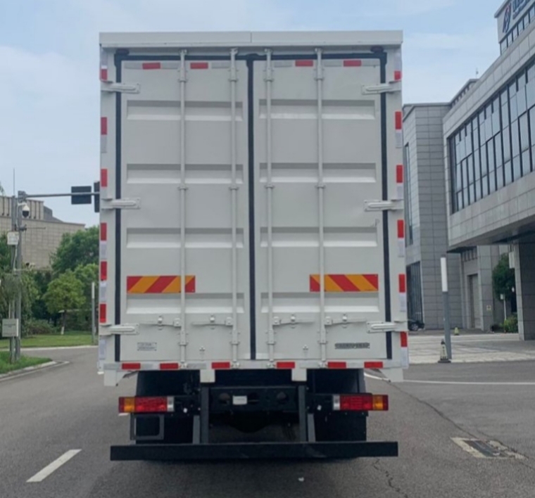 Configuration:领程纯电动翼开启厢式货车,4x2,平顶驾驶室,中航电池,258度电,TZ380XSTPG67电机,特百佳4挡AMT,三环5T前桥,德纳9T中后桥,速比5.57,295/80R22.5轮胎,货厢尺寸:9640x2450x2585