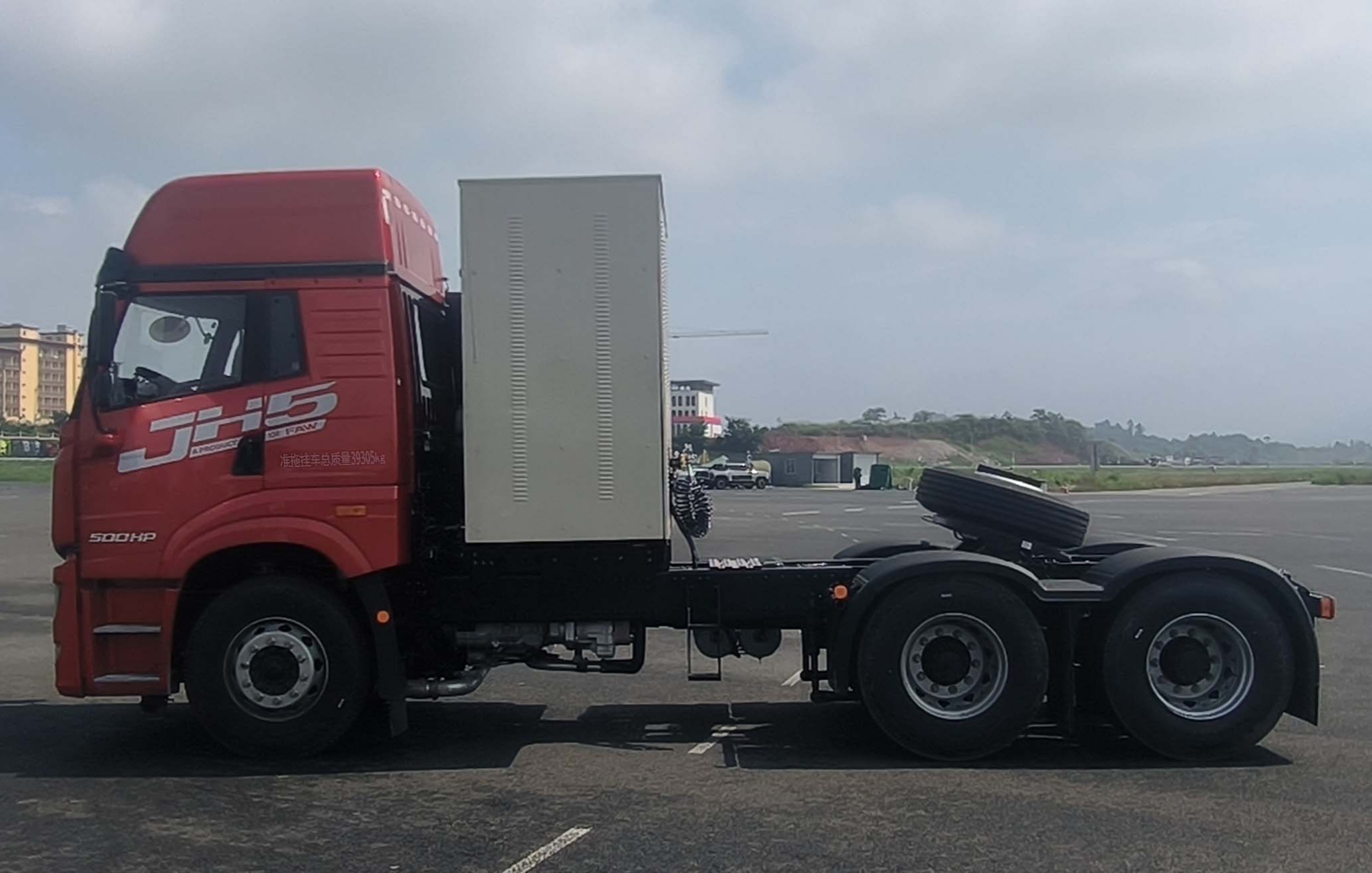 Configuration:库存车,解放JH5危险品牵引车,CNG,6x4,平地板高顶驾驶室,国六,潍柴480马力,法士特12挡变速箱,液缓,435升级桥,速比4.111,8x260L碳纤维缠绕气瓶