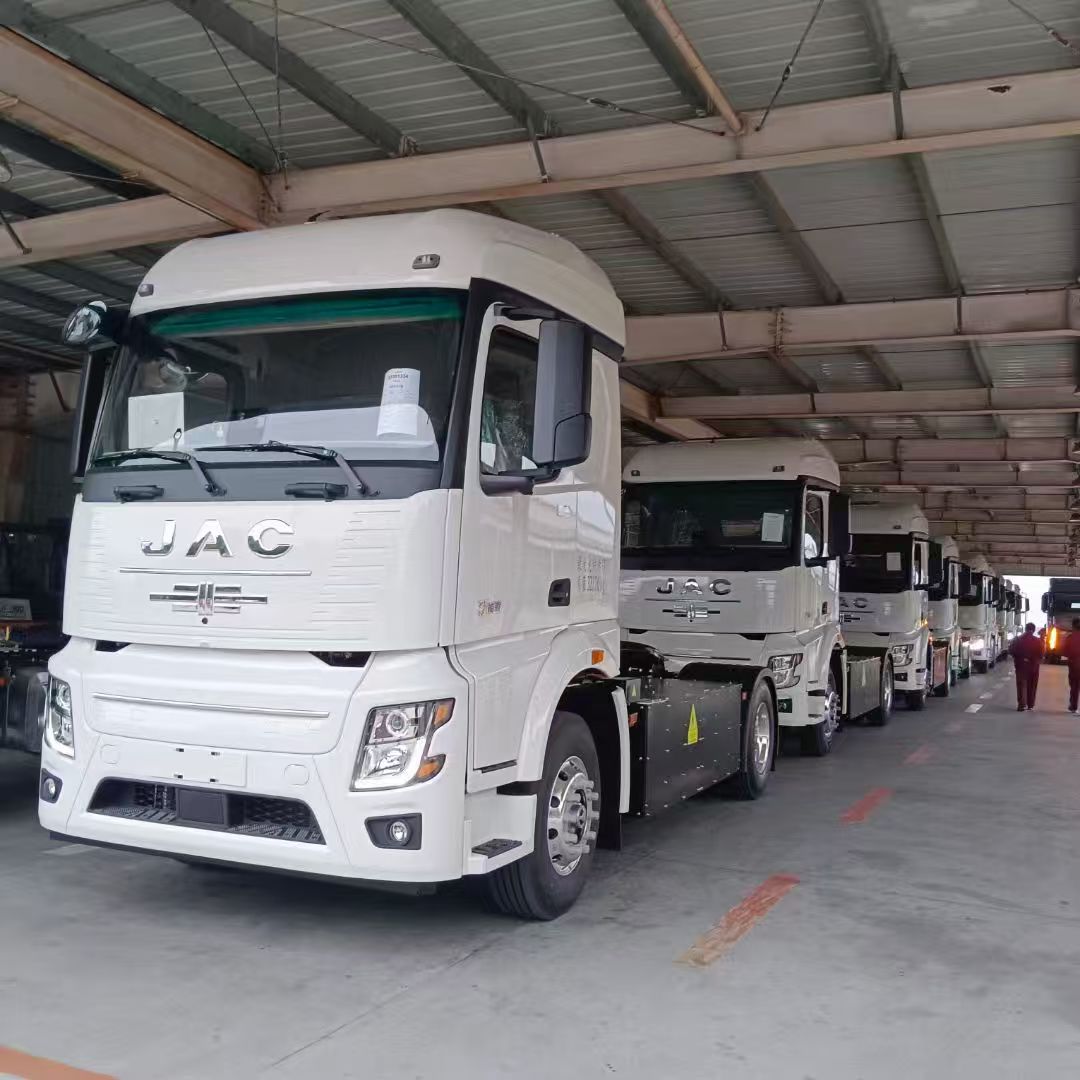 Configuration:非一4x2纯电动牵引车,电驱桥,江淮TZ24Q-FMH01x2电机,高顶驾驶室,弗迪电池,500度电,液冷液热,2C超充,免维护轮端,双回路气制动,电子驻车,全铝合金轮辋,295/80R22.5轮胎,自动紧急制动AEB+车道偏离预警LDW+前向碰撞预警FCW+车身稳定系统ESC,动能回收+陡坡缓降+上坡辅助,六回路摄像头系统,视频安全监控系统