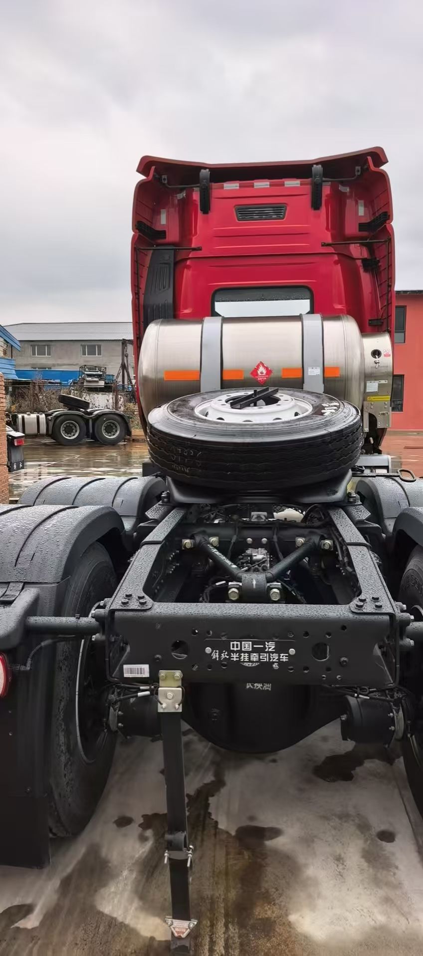 Configuration:库车车,解放J6V牵引车,LNG,6x4,高顶驾驶室,国六,600马力,法士特自动挡变速箱,法士特液缓,2/2板簧,速比3.545,1500L气瓶