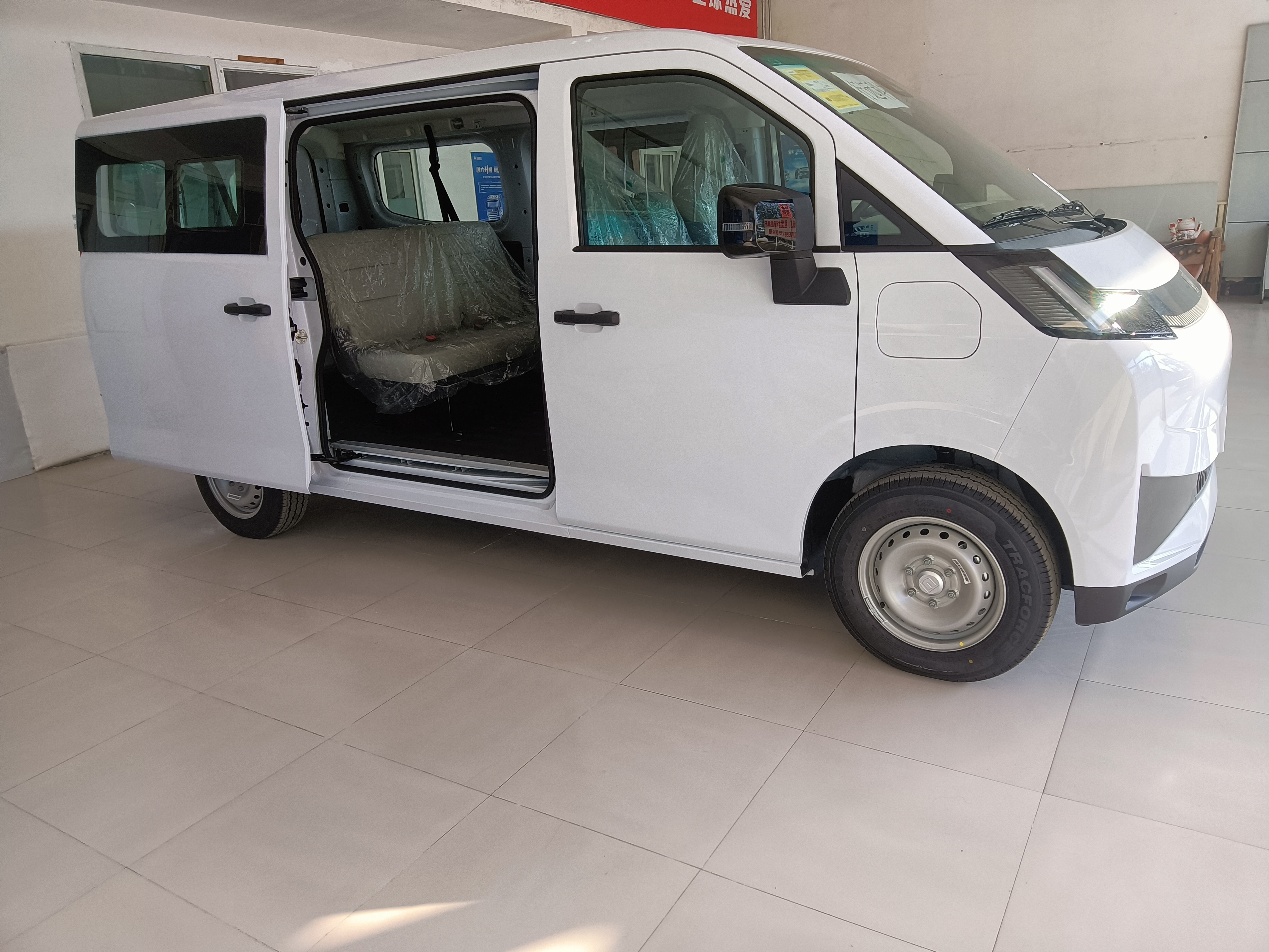 Configuration:快充,2C超充+慢充,V2L外放电功能,玄武51.4度电,工况续航≥370公里,货箱尺寸 :2870*1770*1435,2+3座椅布局,双侧推拉窗,270度磁吸尾门,2C液冷超充、基础ADAS智能辅助驾驶系统(ACC全速域自适应巡航+LDW车道偏离报警+FCW前碰撞预警+AEB自动紧急制动+PEB倒车自动紧急制动),全液晶仪表倒车影像,电子怀挡+EPB电子手刹+ Autohold,白色,数字钥匙。电池质保10年或80万公里。