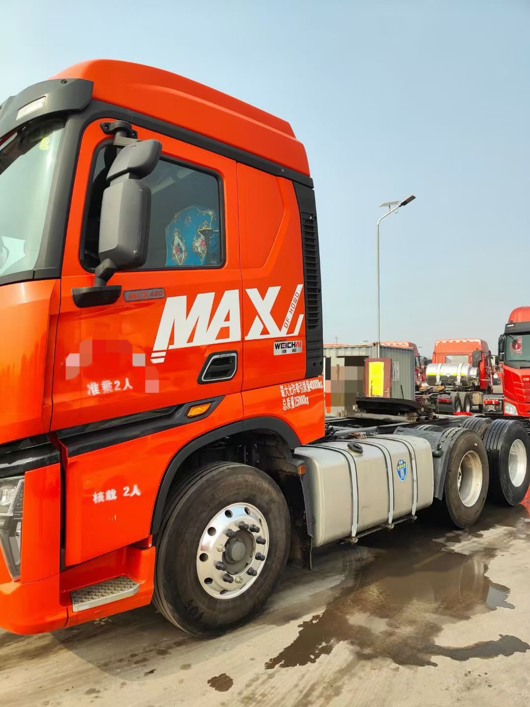 Configuration:23年11月,豪沃MAX牵引车,6x4,高顶驾驶室,国六,潍柴460马力,铝合金轮毂,带保险